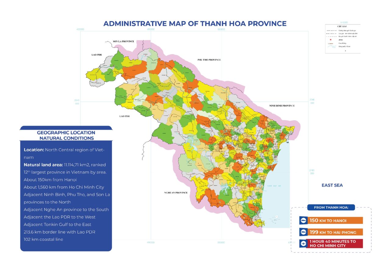Power supply: Currently, there are 19 power plants in operation with a total installed capacity of 2,488.36 MW, including: 13 hydropower projects with a total capacity of 610.66 MW; 02 coal-fi red thermal power plants with a total capacity of 1,800 MW; 01 solar power project with a capacity of 30 MWp; 03 biomass power projects with a total capacity of 47.7 MW.