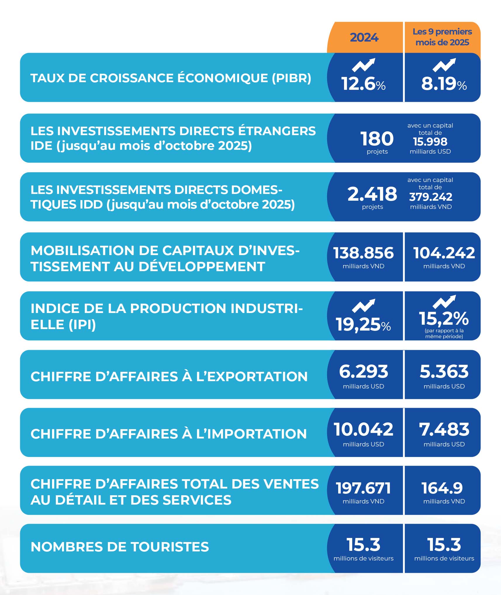 Les services financiers, banques, transports, logements pour les ouvriers, centres de loisirs... sont largement répandus dans la province répondant rapidement aux besoins des autorités, des organisations, des entreprises et de la population locale.