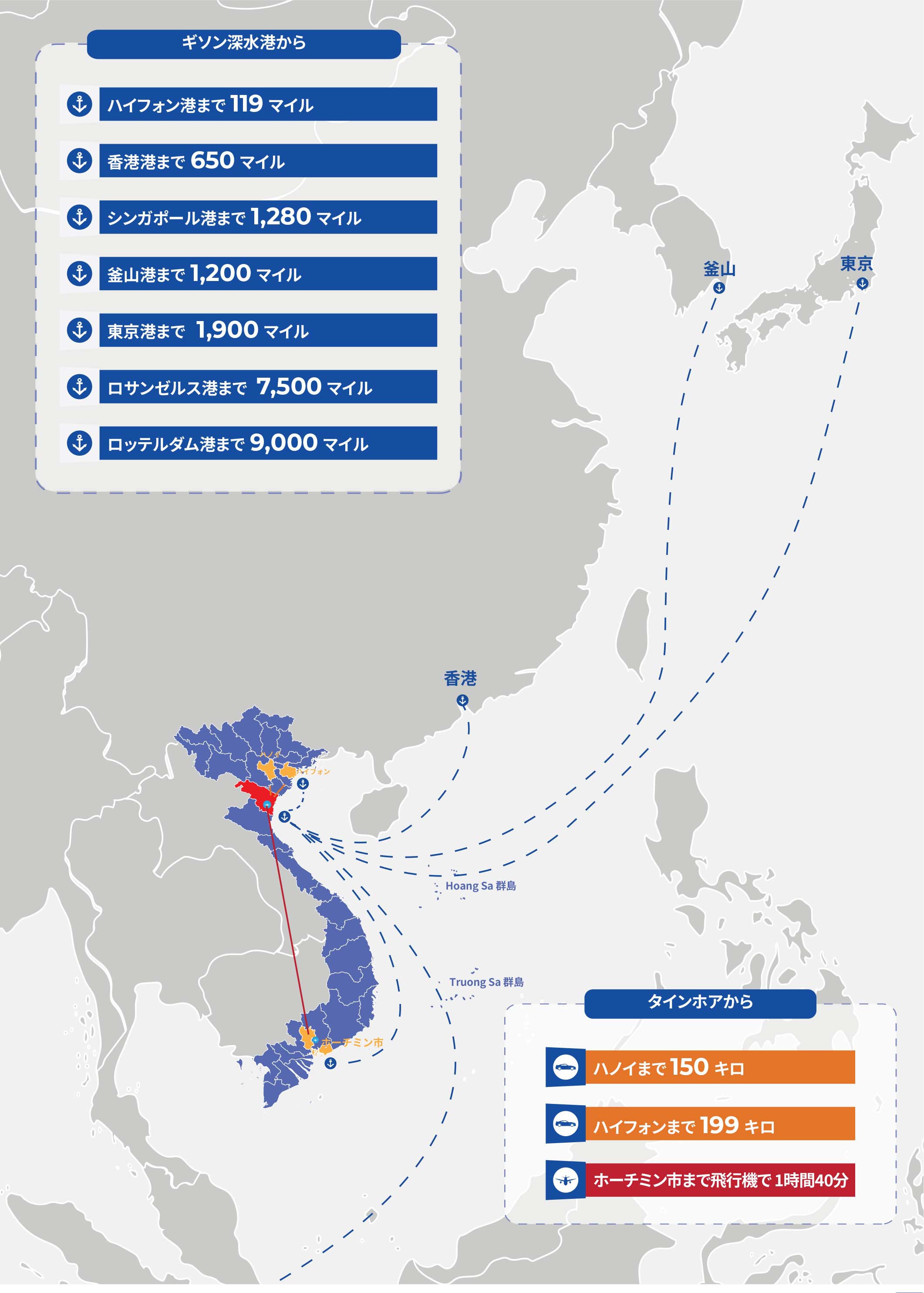 ギソン港は国の総合港湾であり、第一種地域拠点港湾で、レモン地域の特別港湾や埠頭・港湾になる可能性がある。現在、全長5,343mで35の埠頭、ブイ、積替停泊所を運営している。2023年の港経由の貨物量は4,610万トン(このうちギソン港経由は4,580万トン)に達する。現在、2つの船会社(CMA - CGM船会社とVIMC船会社)が運航しており、ギソン港からヨーロッパ、アメリカ、シンガポールへの国際コンテナ輸送ルートを持っている。