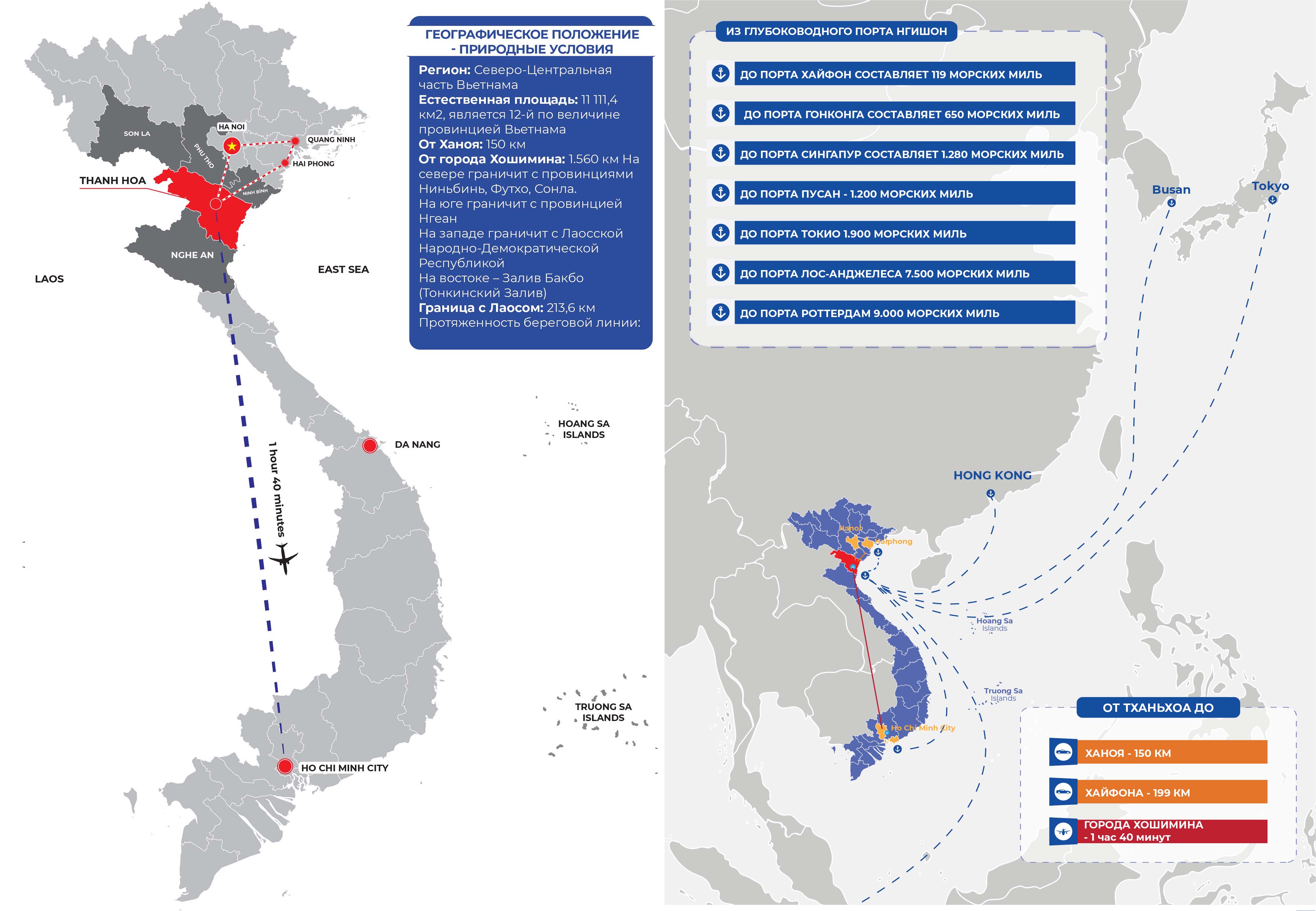Провинция Тхань Хóa расположена в районе Северного Центрального побережья Вьетнама, на расстоянии 150 км от Ханоя и 1.560 км от города Хошимин (1 час 40 минут на самолете); на западе провинция граничит с Лаосской Народной Демократической Республикой, с длиной границы 213,6 км; на востоке находится залив Бакбо с длиной береговой линии 102 км; на севере граничит с провинциями Ниньбинь, Футо, Сонла; на юге граничит с провинцией Нгеан. Находится близко к ключевой экономической зоне Северного побережья.