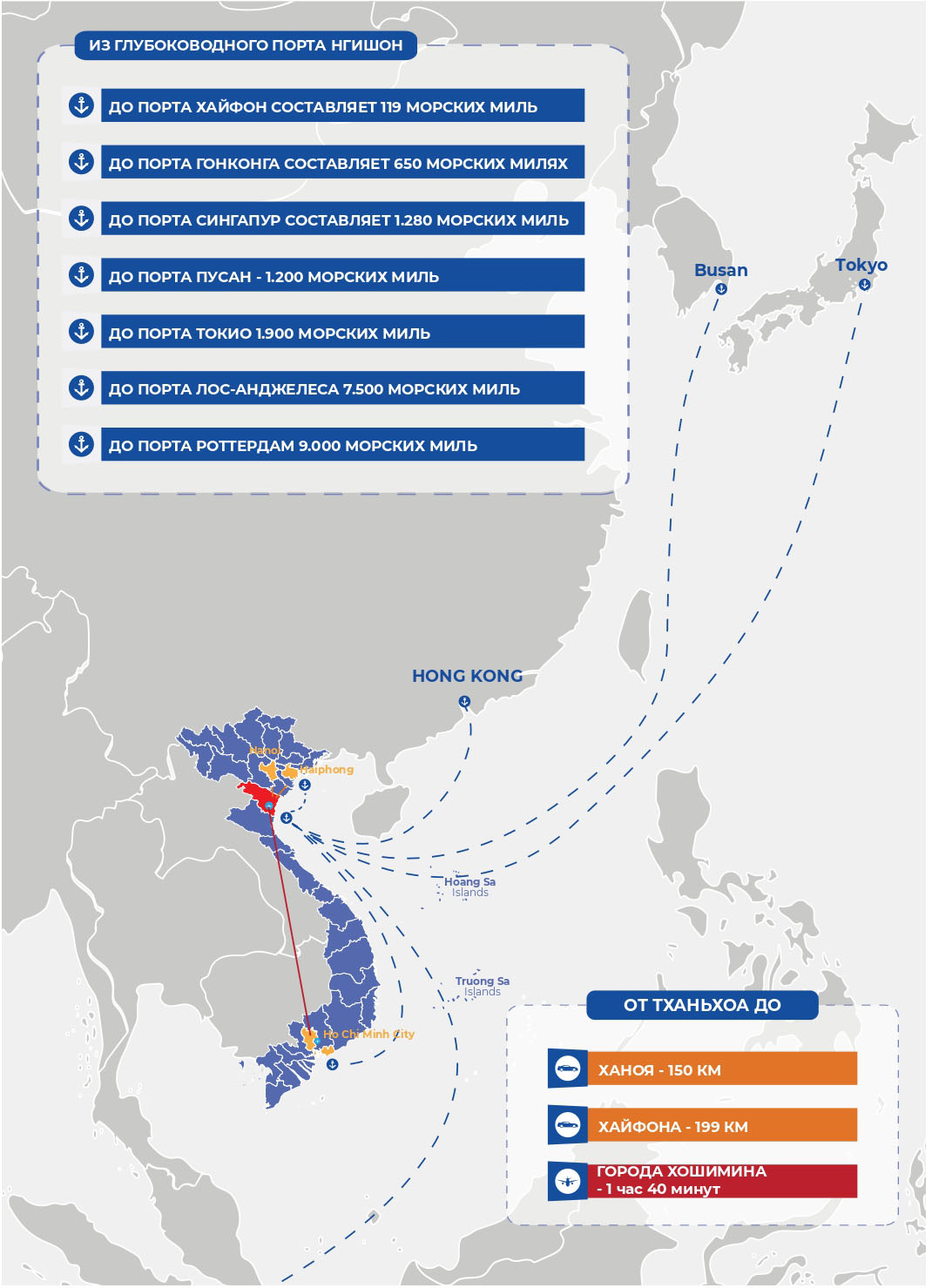 Тханьхоа имеется морской порт Нгишон - национальный многопрофильный порт, региональный транспортный узел I категории, планируемый к развитию в качестве специализированного морского порта, а также причалы и региональный порт Ле Мон. В настоящее время эксплуатируются 35 причалов, плавучих платформ и рейдовых перевалочных пунктов общей протяженностью 5.343 м. Порт способен принимать суда дедвейтом до 320.000 тонн; имеется возможность принимать суда дедвейтом до 100.000 тонн. Грузооборот порта в 2023 году составил 46,1 млн тонн (в том числе через порт Нгишон - 45,8 млн тонн). настоящее время в порту действуют две судоходные компании (CMA - CGM и VIMC), осуществляющие международные контейнерные перевозки из Нгишона в Европу, США, Сингапур и др.